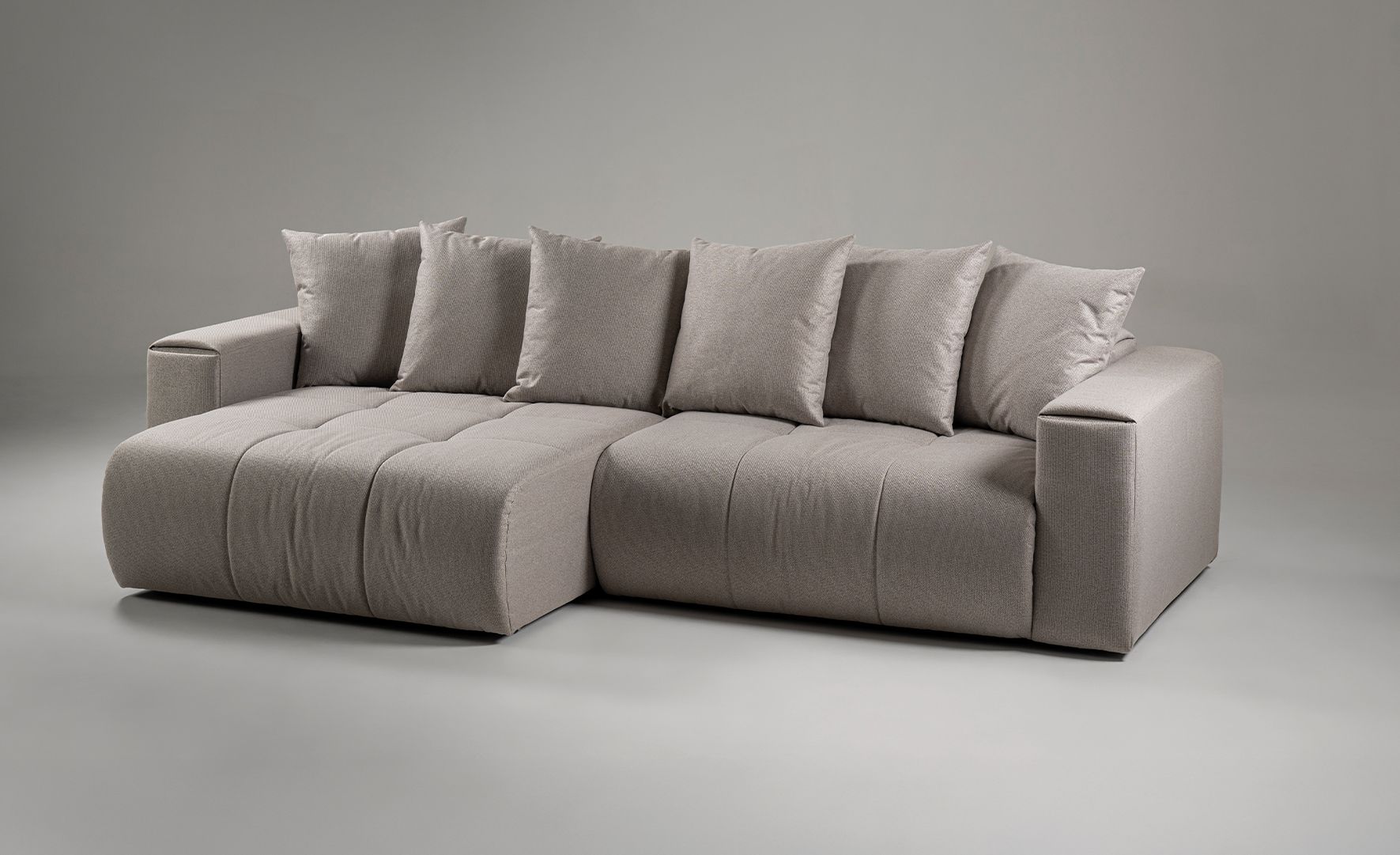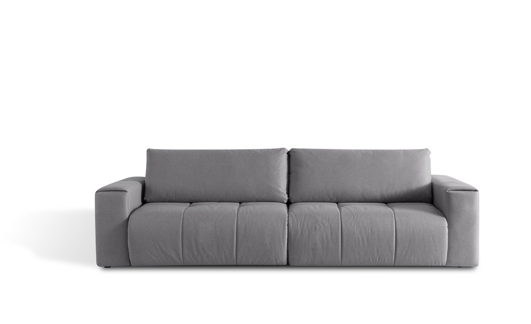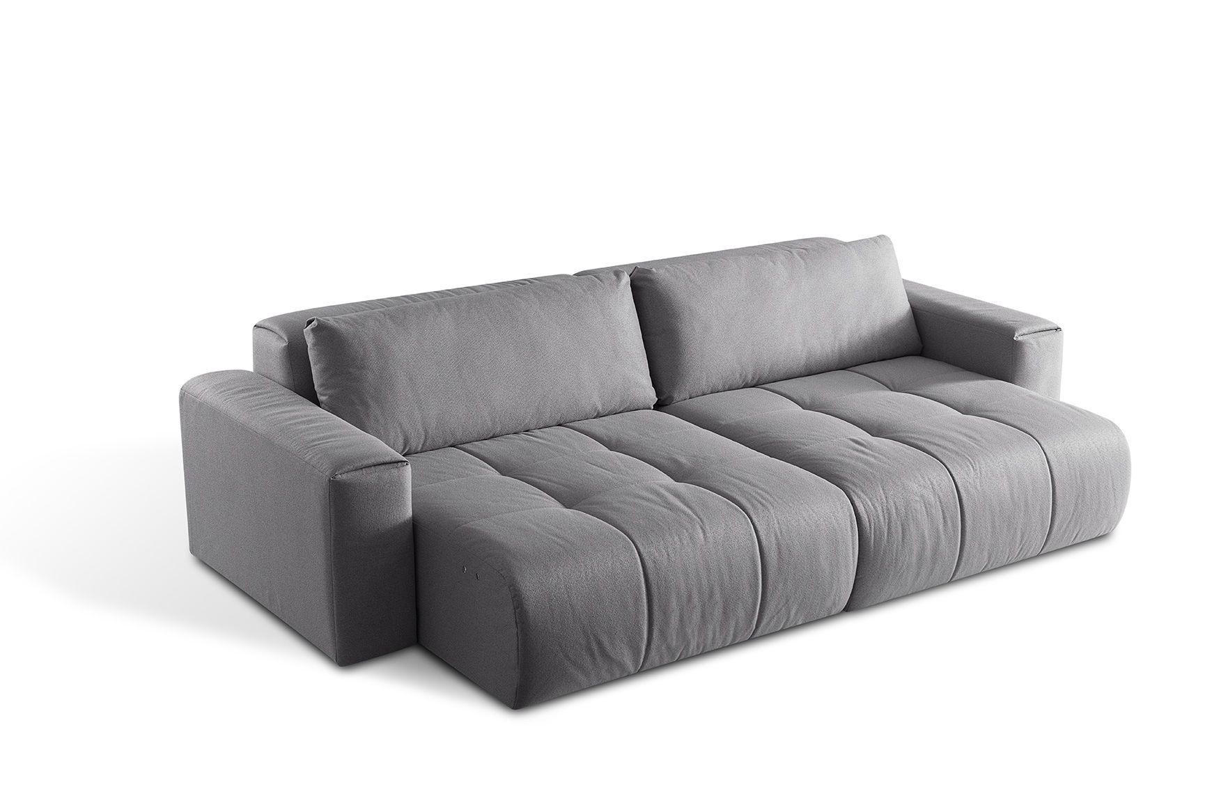 SOFÁ RETRÁTIL COM ABERTURA DE 50 CM, COM OPÇÃO MOTORIZADA OU MANUAL. ALMOFADAS DE ENCOSTO SOLTAS. PÉS INVISÍVEIS DE MADEIRA DE 5 CM.