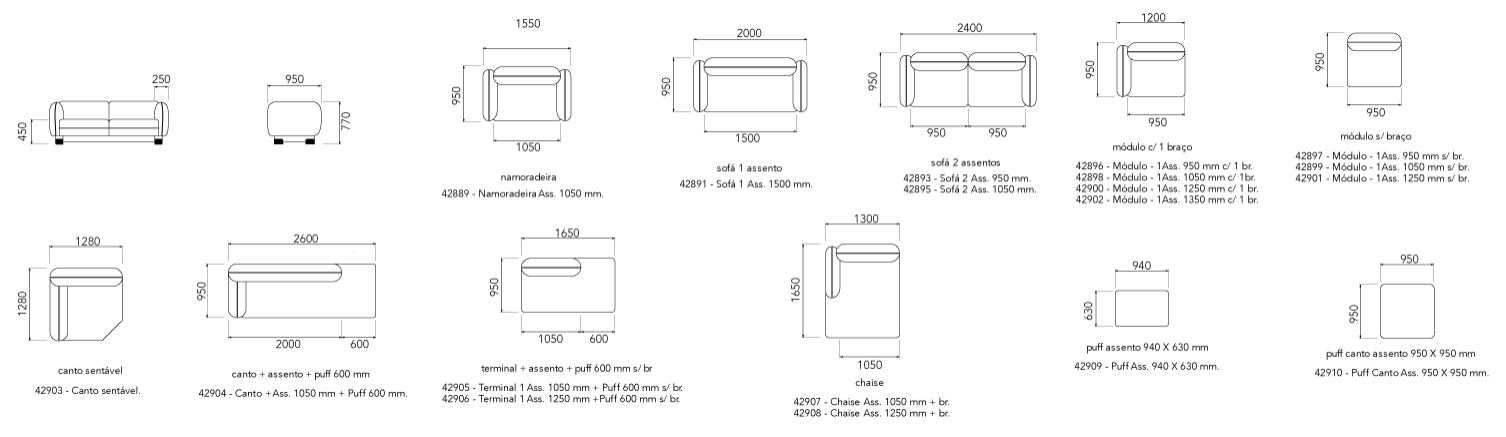 Aplique frontal, deixando peças moduladas com aspecto de sofá inteiro.